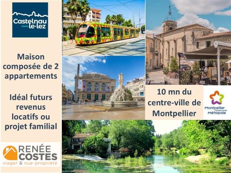 Nouvelle opportunité d’investir dans le Sud de la France, à seulement 10 mn de la place de la Comédie de Montpellier, dans la commune recherchée de Castelnau-le-Lez. Secteur dynamique disposant de toutes les commodités, idéal pour investir. Vous pourrez profiter d’une décote de 52.7% pour devenir propriétaire de cette maison composée de deux logements (un au rez-de-chaussée qui est loué ; et un à l’étage qui est occupé par le couple de vendeurs qui en conservera l’usufruit, ainsi que les taxes, travaux, charges). L’ensemble immobilier comprenant deux habitations indépendantes offrira à terme un potentiel rare (projet familial ou projet locatif). L’ensemble a été estimé à 555 000€, vous pourrez l’acheter pour 262 515€ grâce à la décote d’occupation. Il suffit de verser un bouquet de 88 850€ FAI, puis tous les mois une rente de 994€. Les avantages sont nombreux : - Secteur recherché, proche de toutes commodités et au calme (fond d’impasse). - Ensemble immobilier permettant d’envisager plusieurs stratégies, - Pas de taxe foncière, ni travaux, ils resteront à la charge du vendeur. - Aucune fiscalité contrairement à l’investissement locatif, - Pas d’intérêts bancaires grâce au crédit vendeur, - Pas de gestion, - Economie sur les frais de notaire.